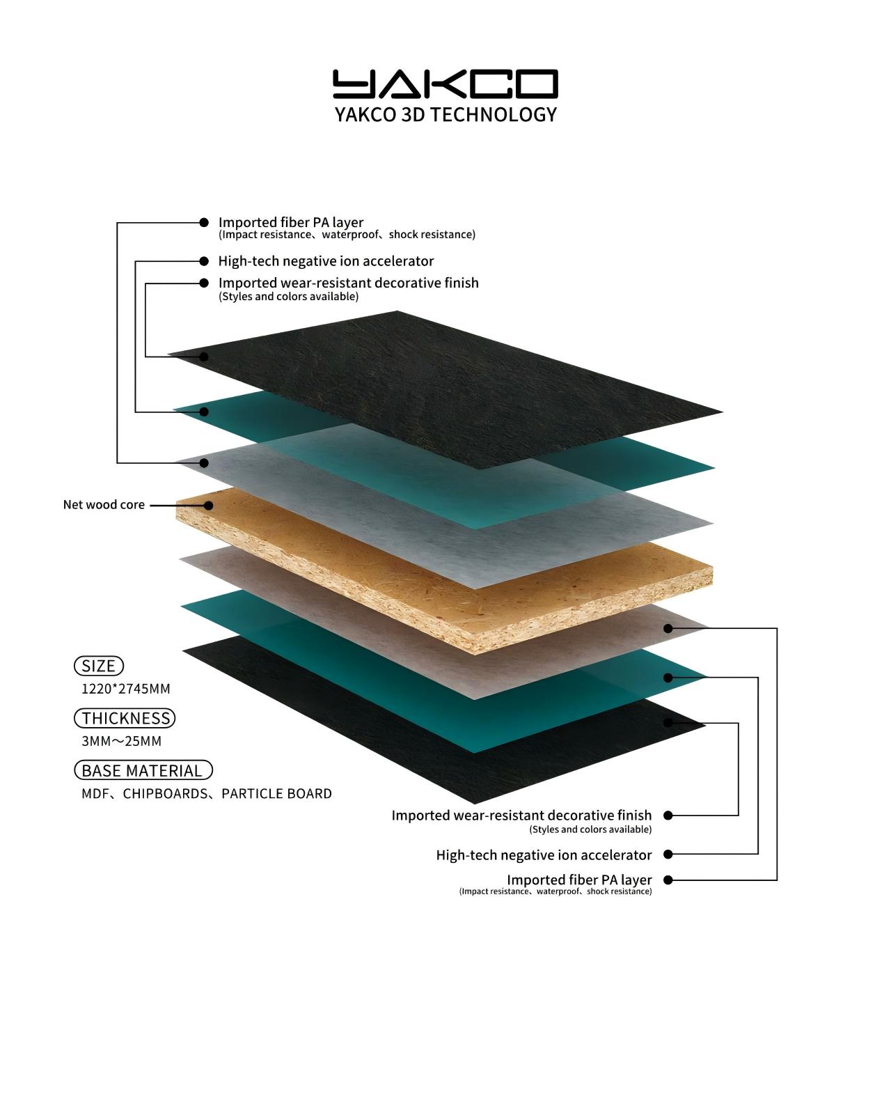 Efekty wizualne : W porównaniu do zwykłych paneli, jego najbardziej charakterystyczną cechą jest silny efekt wizualny. Dzięki specjalnym technikom przetwarzania tekstura i wzory na powierzchni paneli wykazują wyraźne poczucie głębi i warstwowości. Dodaje to przestrzeni niepowtarzalnego artystycznego klimatu.